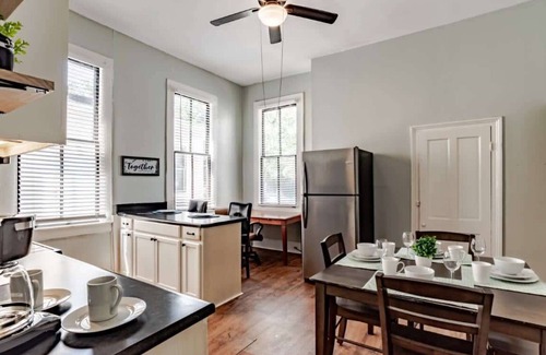 Just five minutes from downtown Mobile and 45 minutes from Dauphin Island, our 1-bedroom, 1-bathroom ground-floor unit is perfect for enjoying restaurants, shopping, and the beach. Located in the Old Dauphin Way Historic District and within walking distance of Gourmet Center, it’s designed with essentials for a comfortable and convenient stay. Photos include professional shots and real-time images from our cleaning team. Pets are welcome with a fee. We’d love to host you!