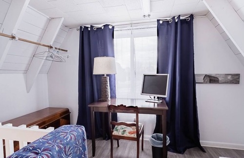 Ozark Mountain Lake Town- Two story A-Frame style, two single beds upstairs for the kids, equipped with USB charging inlets for their tablets. Private room downstairs, with a King bed for a peaceful night of rest. Kitchenette common room with a futon, a kitchen table, refrigerator/Freezer, a microwave, hotplate and sink. Bathroom shower, toilet, and Vanity. Back deck 4 chairs, Back Yard Night Lighting, 6 seat picnic table, Boat parking/plugs, and Firepit 4 seats. Two restaurants a block from front porch, Bull Shoals Lake- just a 7 lol minute drive. 2 Kayaks for rent on request- $25 each, $50 deposit. Plenty of parking for Family Vehicles, Sport Vehicles, Boats/Trailers, etc. Parking in Front, on side near Pawn Shop, and in front near median- Boat Plugs in back.