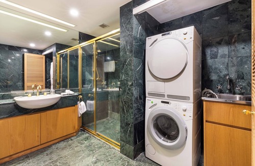 Fully equipped kitchen with coffee machine and complimentary starter pack consisting of tea, coffee, milk, dish washing & laundry powder sachets, shampoo, conditioner & body wash.