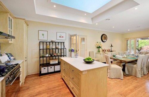 Mirrabooka is a classic Southern Highlands experience - a beautifully decorated home, fireplace, chef's kitchen, verandahs, and 3 acres of lawns and mature cool climate gardens. This sumptuous home sleeps 8 across 3 bedrooms and a sofa bed room. It is pet friendly and only a short drive from Burrawang Village and its famous pub, butcher shop and cafes. Please note however that the 4th sleeping area / room is a very good sofa bed in a section of the large living area that can be fully partitioned.