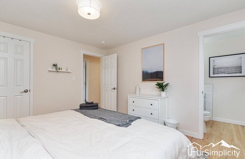 The bedrooms in this updated two-story home are designed for ultimate comfort and relaxation. Each room is outfitted with a hotel-quality mattress, plush linens, and fluffy pillows to ensure a restful night's sleep. The modern yet simple design of the bedrooms creates an upscale hotel feel while still providing the comforts of home.
