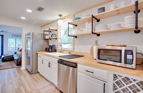 Serenity now! Kick back and relax in this peaceful, stylish Lakefront Retreat! Enjoy the beautiful sunrise on the large deck with your coffee or unwind on the dock in the afternoon with a glass of wine. This renovated and modern 4 bedroom, 2.5 bath is great for any large family or group of friends to enjoy the good life! Master bedroom is super cozy with comfy queen bed, flat screen tv and blackout curtains. The master bath has an extra large shower and a beautiful slipper soaking tub to soak all your worries away. All the bedrooms have tvs with streaming services. Two living rooms one in front and one in back. Both have large TV's and the front one has a queen daybed that doubles as a 4th bedroom. Want to get in some fishing? Fish right from the dock! Have a boat you want to bring? No problem! Boat ramp right down the street and you can tie up right at our dock.Get away from it all and unplug for awhile! We also allow pets with a pet fee. We can’t wait to host you!