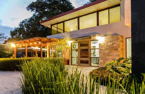 The property was constructed as a modern oasis with an abundance of windows to foster in natural light. The construction uses a myriad of natural, stones, woods, and other native materials to meld the property into the Costa Rican landscape. The living and dining space are an open concept extending up to the 2 story roof line.The kitchen features all modern high end appliances and ample seating for 6 at the massive kitchen island. The kitchen opens up to a covered terrace with a hand carved table which can seat up to 15; making the spaces a perfect combination for entertaining and lounging. You will find 2 guest suites with queen size beds on the lower level, each with access to their own full bathes. Both of these guest suites have access to a shared outside terrace that leads to the property's private pool. Head upstairs and you will find a large 3rd guest bedroom with a queen and twin bed; perfect setup for a kids suite . Also located on the 2nd floor is the huge master suite, adorned with a king size bed and separate seating areas. Off the master you will find a private terrace to sip your coffee and listen to the howler monkeys in the morning. The master bathroom is truly a spa setting with double vanities and an expansive indoor / outdoor shower. We are sure you will appreciate the master suite as much as we do. Each of the bedrooms and also the main living areas (kitchen/dinning and living room) have their own air conditioning units to keep you cool in the Costa Rican heat. Located in the rear of the property is your own private swimming pool with a deck adorned with lounge chairs for sun bathing. There is even an outdoor shower to rinse off after coming back from the beach.