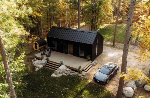 Modern Cabin in Forrest with Cedar Barrel Sauna | Cabin in Hackensack