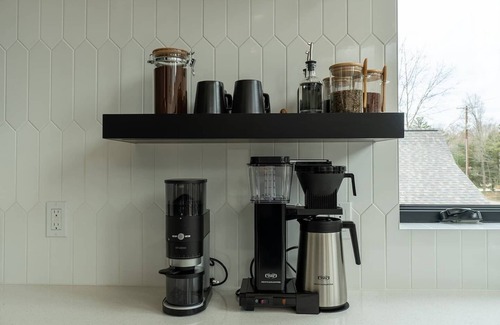 This fresh Downtown Saugatuck flat was professionally decorated and furnished in 2023 in a clean, modern style. Beautiful works of art grace the walls by a local artist and get this, they're for sale too! Michigan Mod can accommodate up to 4 guests and is the perfect getaway for a couple or small family, with 1 ultra-comfortable king bedroom, 1 all-new bath loaded with luxury bath products from Malin and Goetz, and a queen pullout sofa. This sleek penthouse boasts a fully stocked kitchen with locally roasted coffee, Michigan-made tea, spices, and all the utensils needed to cook a meal at home. You’ll love relaxing and recharging in this open space—the atmosphere is crisp and fresh, yet also cozy and inviting. Do you like a room with a view? This one’s got it. Motorized blinds effortlessly raise to reveal tree-studded views and the most perfect sunlit glow. You can take in even more natural beauty by heading outside to the spacious raised deck furnished with both a dining and lounge area. As you sip your morning coffee or evening wine, you can enjoy the peaceful sites and sounds of the hills of Saugatuck as you contemplate a walk downtown.