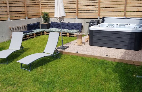 You can make the most of the outdoors with the BBQ grill and hot tub at this vacation home. As for the great indoors, you can try your hand at foosball, or enjoy the TV and table tennis.