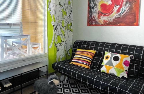 Best suited for one or two guests. Sleeps four but only has room for two at the dining table. In the summer, you can use the bigger dining table on the balcony. The apartment is not equipped with children in mind. Parents are responsible for the safety of their children.