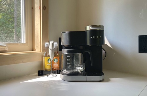 We offer a Keurig K-Duo machine along with K-Cups and coffee beans and grinder. Other amenities include a frother and select sweeteners.