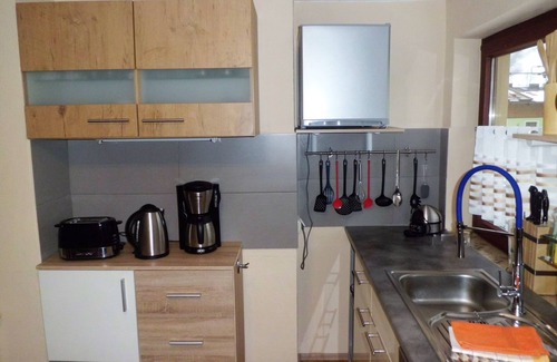 In the fully equipped kitchen you will find a ceramic hob, oven, refrigerator, dishwasher, microwave, coffee maker, toaster and kettle. Crockery, pots, pans cutlery and everything else you need can be found here in sufficient quantity.