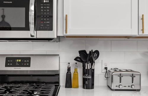 - Kitchen with quartz countertops, new appliances, & stocked w/basic cooking essentials