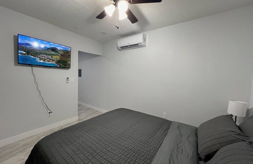 This is a private guest suite with its own entrance, bathroom, and all essential appliances (Coffee Maker, Fridge, Microwave, TV and more). Guests are also provided high speed Wi-Fi, a Roku device with YouTube, Netflix, Hulu, and many TV channels through Sling. 10 minutes away from UCF, 20 minutes away from the Airport, less than 30 minutes away from Universal, Disney World and the International Drive outlets.