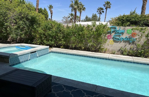 Enjoy our Modern Desert Oasis. This Private & Dual Gated Compound has been customized for a relaxing Hollywood-esque Hideaway Weekend complete with private Pool + Spa and roundabout driveway. This Doggo Friendly Modern Desert Castle has 2 roomie living spaces, a formal living and dining room in front and remodeled kitchen with great room facing the pool, as well as very spacious accommodations. Features 3 king + 2 queen beds, in 4 bedrooms and 3 bathrooms. This custom and welcoming home is perfectly self sustaining for entertaining and staying in, and also conveniently walking distance to all grocery / dining / gym as well as multiple Starbucks locations all within 1 block (and even a carniceria :-) with an additional shopping center 2 blocks away. Located 5 - 7 minutes to the airport or downtown Palm Springs strip. Please note: Jacuzzi is built in and use is limited during extreme winter temperatures due to concrete and in-ground construction, depending on outdoor temperature. To confirm spa weather conditions in the winter, please reach out before your stay. We take pride in providing a warm and resourceful home with many features and amenities unlike most vacation rentals, as well as most items and spices found standard in kitchens. If you have any questions please reach out directly anytime. PS City ID: 052422
