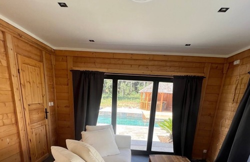 This wooden house is located within our property of 8000m2. Note that the swimming pool, the spa and the pool house is entirely private to your wooden house.
