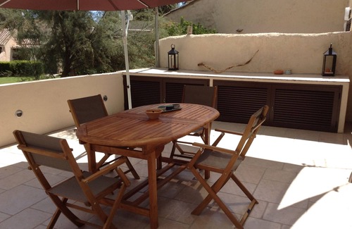Mini villa completely renovated with a magnificent 40 m2 terrace located in a wooded and fenced park a few meters from the beach.