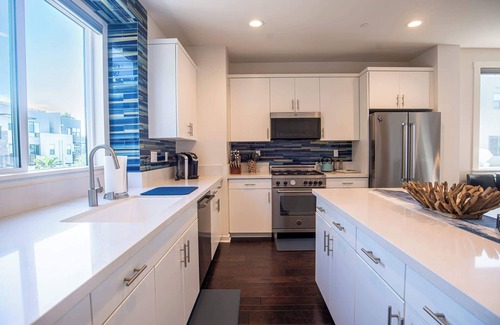 Experience modern coastal living in this fully furnished 3-bedroom, 3.5-bath townhome in South Oceanside. With 1,951 sq. ft. across three levels, enjoy an open-concept layout, gourmet kitchen, and a private rooftop deck with panoramic ocean views on the 4th level. Perfect for business professionals, travel nurses, or families, this home is just a 5-minute walk to the beach, features a 2-car garage, and has access to the community pool and spa. Minimum 30-day stays.