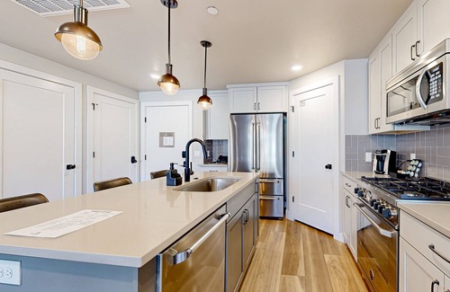 Step into this mountain contemporary residence, tastefully furnished and thoughtfully designed to provide the utmost comfort and style. There's plenty of natural light, high-end finishes, including quartz counters and European-style appliances, creating an atmosphere of tasteful sophistication. Enjoy a stunning panoramic view of the rolling foothills of the Wasatch Mountain Range, offering a picturesque and tranquil backdrop. The open-concept living area is perfect for entertaining, featuring a gas fireplace and a spacious kitchen with a generous island. There's the convenience of an in-unit washer and dryer, ensuring a stress-free experience for guests.