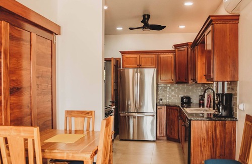 This beautiful seafront vacation rental, is the perfect place to escape from reality. Located about 20 minutes north of the exciting Placencia village you will find this newly built home. Surrounded by a community of other upscale homes and rentals. This rental comes with 2 bedrooms, one king bed and 2 singles that can be pushed together to create another king. Along with 1 full private bathroom, a fully equipped kitchen and a patio perfect for watching the sun rise.