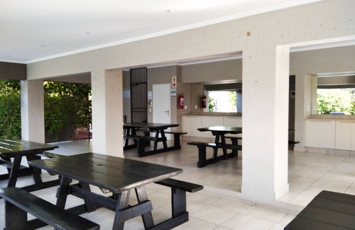 Modern and clean 1 bed apartment with a bedroom that has a queen size bed. This amazing apartment is situated in Fourways and has easy access to Sandton City. There is a lovely communal pool 10 meters from the apartment, where one can also braai/BBQ.