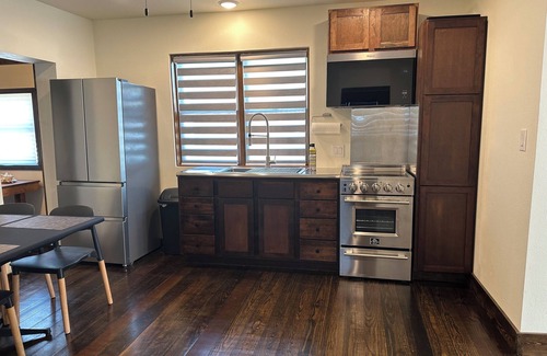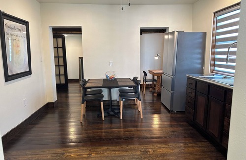Get ready to relax in this charming 2-bedroom stone cottage in Muldrow. The cozy space features 1 king bed and 1 bunk bed, plus additional sleep space, perfect for a small group of guests. With amenities like AC, heating, fully furnished kitchen, and leather furniture your stay will be pleasant and comfortable. The bathroom includes a bathtub and hair dryer for added convenience. Plus, there's a utility room and additional office space with internet and optional (inflatable) twin bed for those who need to catch up on work or enjoy a good book. This home is conveniently located less than a mile from I-40 exit 321.