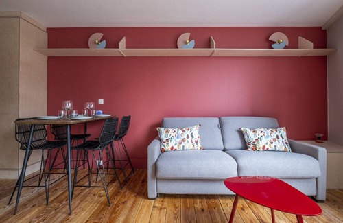Located in the heart of Chamonix, in the pedestrian street of the town centre, you will appreciate the comfort of the sofa bed and the pull-out beds with their high quality bedding.