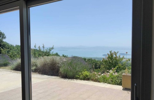 Modern villa with breathtaking views of Lake Trasimeno, 75" TV, wallbox is located in Lisciano Niccone. Modern villa with breathtaking views of Lake Trasimeno, 75" TV, wallbox provides accommodation, featuring TV, Security/Safety, Guest Services, among other amenities. This Villa features TV, Security/Safety, Guest Services, to make your stay a comfortable one.