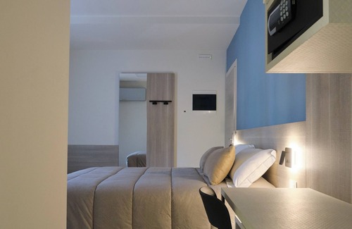 -Our deluxe twin or double room (with an extra single foldable bed that can be added>for 3 guests) features a private bathroom with a shower, hand basin, a bidet, WC and a hairdryer, with free toiletries on top. The room features A/C, a flat-screen TV with satellite channels, a comfortable wardrobe, a mini frigobar, a handy safe box and an inner courtyard view. Our splendid room has been entirely renovated recently. The building offers a private entrance and a dining area, where you will enjoy a rich Italian and continental buffet breakfast.