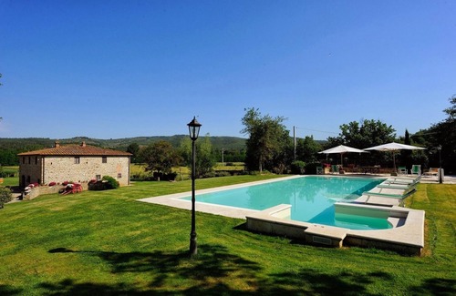 PLEASE NOTE: it is possible to have the pool heated (un request and upon payment), available only if booked at least 2 weeks before arrival.ACCOMMODATION: (430 m2) Gr. fl.: large living room with fireplace, living/dining room, kitchen, 1 double bedroom with bathroom with shower. 1st fl.: 4 large double bedrooms, one of which with jacuzzi bath and shower and 3 with shower.LOCATION: 6 km Ambra, 14 km Bucine, 31 km Siena, 38 km Arezzo, 45 Radda in Chianti, 70 km Florence.