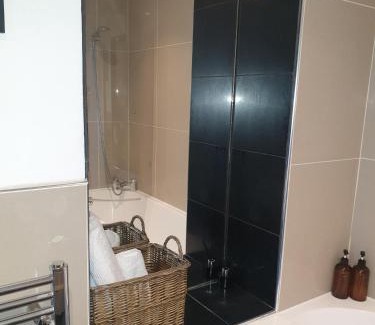 Food & DrinkTea/Coffee makerBathroomTowels, Shower, Toilet paper, Conditioner, Shampoo, Free toiletries, Hairdryer, Private bathroom, Walk-in shower, Body soapMedia & TechnologyCable channels, TV, Satellite channels, Flat-screen TV, Streaming service (like Netflix)GeneralHeating, Carbon monoxide detector, Ironing facilities, IronKitchenRefrigerator, Cleaning products, Stovetop, Wine glasses, Microwave, Kitchen, Oven, Toaster, Kitchenware, Dishwasher, Electric kettleLiving AreaSitting area, Sofa, Dining areaInternetWireless internetBedroomLinensAccessibilityEntire unit located on ground floor |