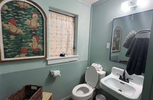 Cottage 1 (downstairs) is the closest room to the beach! A Nautical Theme with just over 400sq ft and including a bedroom with 2 queen beds, a large living room area with a futon/sofa bed and sweet kitchenette, it has all you need for your stay at the beach! This motel has a huge pool, free WIFI, with direct access to the beach at the end of our driveway. You can sip a cold beverage from the sundeck overlooking the pool.