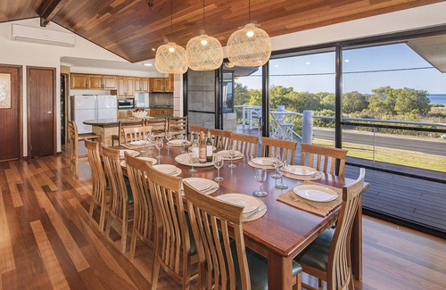 Comfortably sleeps 3 families with 7 bedrooms, 3 lounges, separate surround sound cinema and games room with pool table. 14 beds so you can manage your group between singles, queens and king size beds. One of the only properties this size, that is walking distance to Dunsborough, on the beach and with fantastic ocean views. This huge beachfront property is the perfect stay for families.