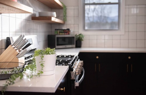Each Unit at Moonlight Lodge has its own kitchen, equipped with all new appliances and finishes. They are fitted out with things such as cooking utensils, pots and pans, general spices, and basically all the tools you need to make morning pancakes, spaghetti bolognese dinner, and everything in between. (Groceries not provided.) For morning coffee, there is a k-Cup machine and coffee pods, but you are welcome to use your own flavors as well. A regular coffee brewer is provided too. You will find all the dish ware, serve ware, and drink ware you need for such a large group to dine, but don’t worry, we have you covered with a dishwasher too.