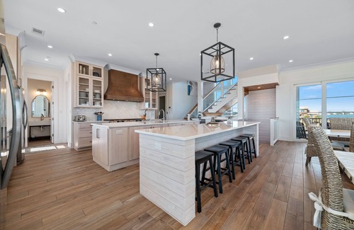 This is a newly designed 10-bedroom plus bunkroom, 11.5-bath beachfront home featuring a private pool (heatable from October to May for $60 per day), an elevator, and breathtaking views. If you remember the original Morning Breeze on the lagoon, this version has been supersized, adding four more bedrooms and a bunkroom. All three levels offer spacious living areas with panoramic views stretching from the Gulf to Little Lagoon.