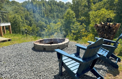 Step out onto your spacious deck, where a private hot tub invites you to relax in total seclusion. While the view is good to great, the true highlight of Ocean Blue is its private setting—ideal for unwinding, reconnecting, and enjoying the quiet beauty of the Blue Ridge Mountains. As the evening settles in, your personal firepit awaits for campfire cooking, stargazing, or simply cozying up by the flames. Firewood is included (bring charcoal if you prefer grilling that way).