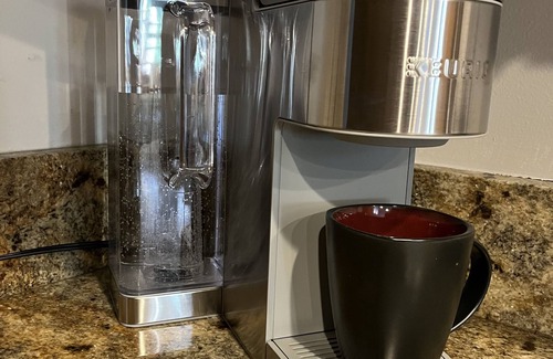 The large kitchen comes equipped with everything you'll need ! The granite counter tops provide ample space for preparing food or enjoying meals at the breakfast bar.