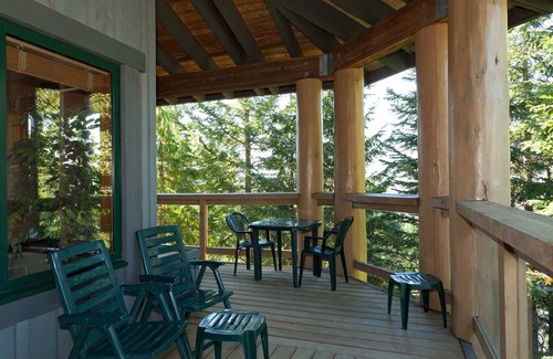 Step onto the wraparound deck to take in panoramic views, grill on the BBQ, or relax in the private hot tub on the lower-level balcony. Guests also have access to a shared hot tub available year-round and a shared swimming pool open mid-June to mid-September.