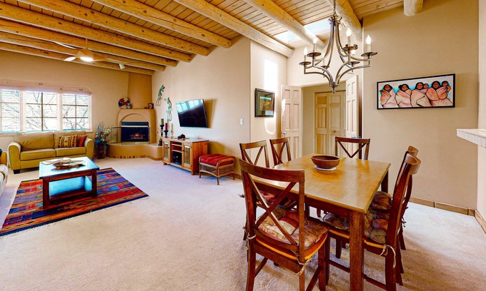 Perfect to escape to any time of the year, this Resort de Lujo condo sits on 105 acres of serene property, boasts easy access to major travel routes in the area, is minutes from the Plaza's shops, and restaurants, and is also close to four National Monuments. This desert haven is located in the beautiful Sangre de Cristo Mountains, in the southeastern part of this subrange of the Rocky Mountains. When you call this welcoming casa your home away from home, you can enjoy all that is offered in Sante Fe, the oldest capital in America, including many historical sites, mountain hikes, points of geological interest, and fabulous skiing. Additionally, Quail Run Resort is a participant in the Audubon Society’s Sanctuary Program and offers a 9-hole golf course, a health club, a 65-foot indoor ozone-purified pool, a hot tub, tennis, and pickleball courts, walking trails, social events, and exercise equipment. A gated community with 24-hour security ensures great privacy and surveillance.