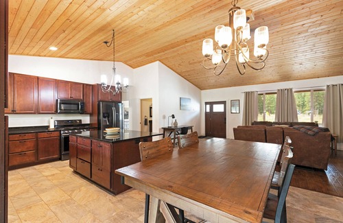 This home comes fully equipped with everything you need for a seamless stay: high-speed WiFi for staying connected, fresh coffee to start your mornings right, all linens provided, and a convenient washer and dryer. The two-car garage and ample parking space ensure plenty of room for your vehicles, bikes, skis, and rafting gear.