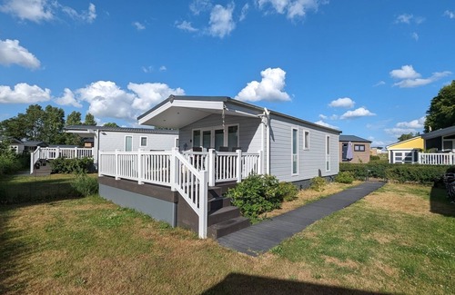 On 45 m², the mobile home, built in 2019, offers you a unique holiday experience on the Bay of Lübeck. Surrounded by a beautiful forest is the Ostseecamp in a quiet location. Here is a bungalow of the extra class with an 18 m² large veranda ready, which is ideal for a holiday with up to five people and a dog.
