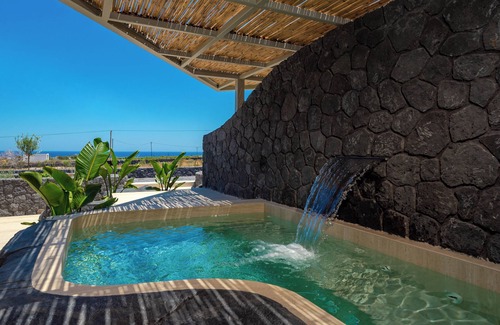 Enjoy your private outdoor heated Jacuzzi (maintained at around 33°C)—the perfect place to unwind after a day of exploring Santorini.