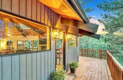 Tranquil mountain getaway with floor to ceiling windows, chefs kitchen with double Wolf stove + huge waterfall edge island for entertaining. Amazing views of Indian Peaks from wrap around deck that includes a hot tub. Tree house feel, in a unique hexagon, quiet, next to hiking trails - yet just 10 minutes to Boulder.
