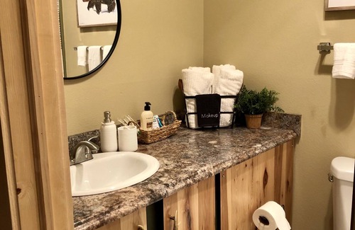 2 TVs (one Smart) 2 DVD players, Chromecast, Wii, plenty of games & books. Queen Murphy bed & queen sofa sleeper sleep 4 total. Full kitchen w fridge, Keurig, oven & microwave. Full bathroom with tub and shower. Dining table seats 5, and fast Wifi!
