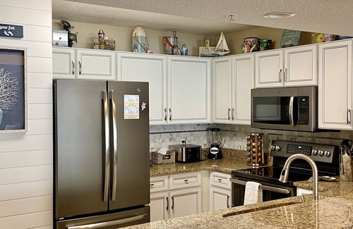 The kitchen features all new appliances, super quiet dishwasher, granite counters, and all the amenities to cook with ease, including a blender, crock pot, knife set, spices, and large electric griddle/fry pan to cook for a crowd! Coffee maker and also a Keurig to accommodate guest's preference.