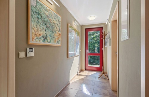 4-room apartment on 1st floor. Spacious and bright, partly with sloping ceilings, comfortable and cosy furnishings: sep. WC. Upper floor: open living room with 1 double sofabed and satellite TV (flat screen), electric heating. 1 room with 2 beds, 2 pull-out beds and electric heating. 1 room with 1 double sofabed, 1 double bed and electric heating. Large, open kitchen (dishwasher, 2 ceramic glass hob hotplates, kettle, microwave) with dining table. Bath/shower/WC. Electric heating, floor heating. Facilities: baby cot. Internet (WiFi, free). Please note: suitable for families. Non-smoking house. Maximum 2 pets/ dogs allowed. Smoke alarm, fire extinguisher.