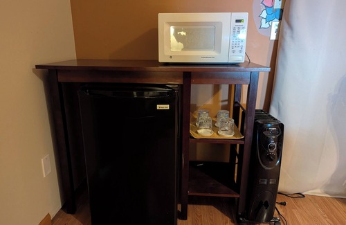 Our two-bedroom suite includes a king-sized bed with fresh linens, a television, a small couch and a fireplace in the first bedroom. A queen-sized bed with fresh linens, a television, a small dining table, microwave and small refrigerator in the second bedroom. Shared bathroom between the two rooms. Private entrance with outdoor patio seating. Breakfast available for all guests at 8 am. .
