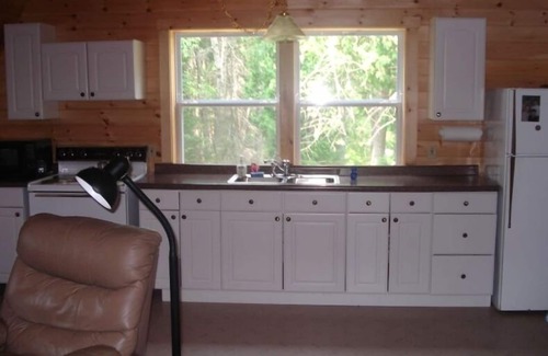 Our "Apartment in the Maine Woods" was built in 2005 to attract our sons and their families to visit. We have 2 daughters-in-law to please (so you know it is extra nice). The apartment is turn key ready with everything you need for a comfortable week's stay. It is pine paneled,Air-Conditioned and Heat, has 2 bedrooms, a medium size living area, a single bath with a stall shower, a FULL kitchen and a deck overlooking Crockett Brook as it babbles by. Guests love it! Apartment includes a full size washer and dryer. (we provide laundry detergent).We have wifi and an outside fire ring and a small Cuisinart gas grill.. We provide all linen, most condiments, paper goods and most other things you might need. We even supply tooth paste!We stock your refrigerator with a dozen eggs, stick of butter, bottled waters, sodas,mayonaise,mustard and ketchup. Cabinet includes flour, sugar,coffee,tea,oil and spices. Enjoy host Judy's Maine blueberry muffins on your first morning. Talk to host Skip about a personalized boat tour of Lake Megunticook, a glacial lake(weather permitting) All part of your experience with us!