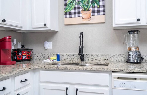 Looking for the perfect getaway near the magic? This modern 4-bedroom townhouse at Coral Cay Resort hosts up to 12 guests and is just minutes from Disney, Universal, SeaWorld, and 5 minutes from Walmart. Surrounded by restaurants and shopping, it offers spacious living, comfy beds, fast Wi-Fi, and a full kitchen. Perfect for families or groups—book now and make unforgettable memories!