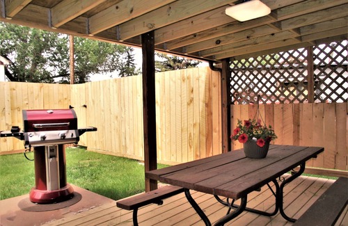 Or dine outdoors! Includes a propane grill and picnic tables covered deck right off the kitchen