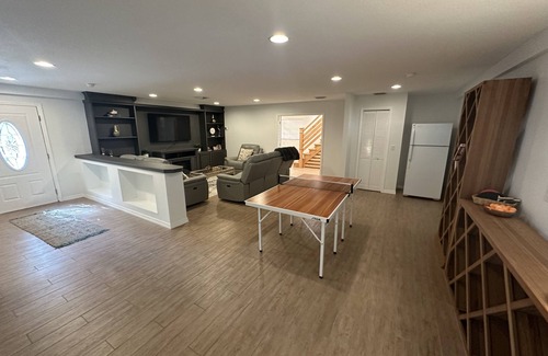*Living Room TV Area downstairs with Dining Table, Ping Pong & access to pool and outdoor bar with TV