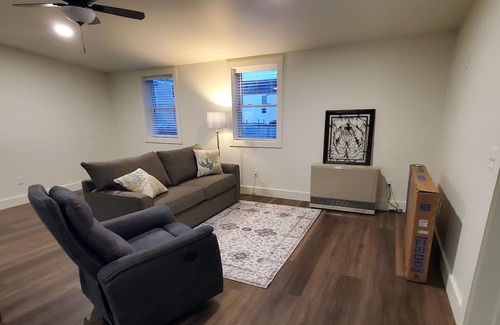 Brand new large, fully furnished 1 bedroom unit. Private porch and entry way. Eat in kitchen with granite counters and new 4 piece stainless kitchen suite. Large pantry (or storage area). Full tub/shower. Washer dryer in unit. Newly paved private driveway. Walk in closet. Insulated very well & energy efficient appliances. Pull out couch for guests. Utilities included. No pets. No smoking.