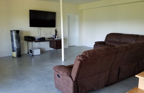 * Large family room in the walk out ground floor with 6 bunk bunk room and queen bed bedroom. There is a large bathroom in the ground floor with double sink.